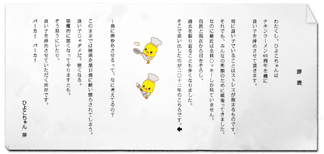 チキンラーメンのひよこちゃんが良い子を辞めたそうです。