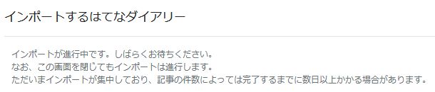 「数日以上かかる場合があります」と書かれていたはてなダイアリーからはてなブログへのインポートですが、開始してからすでに3日半ほどかかりますが、まだこの状態です。